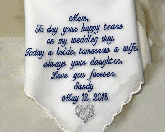 Personalized Mom Wedding Gift - Embroidered Wedding Handkerchief