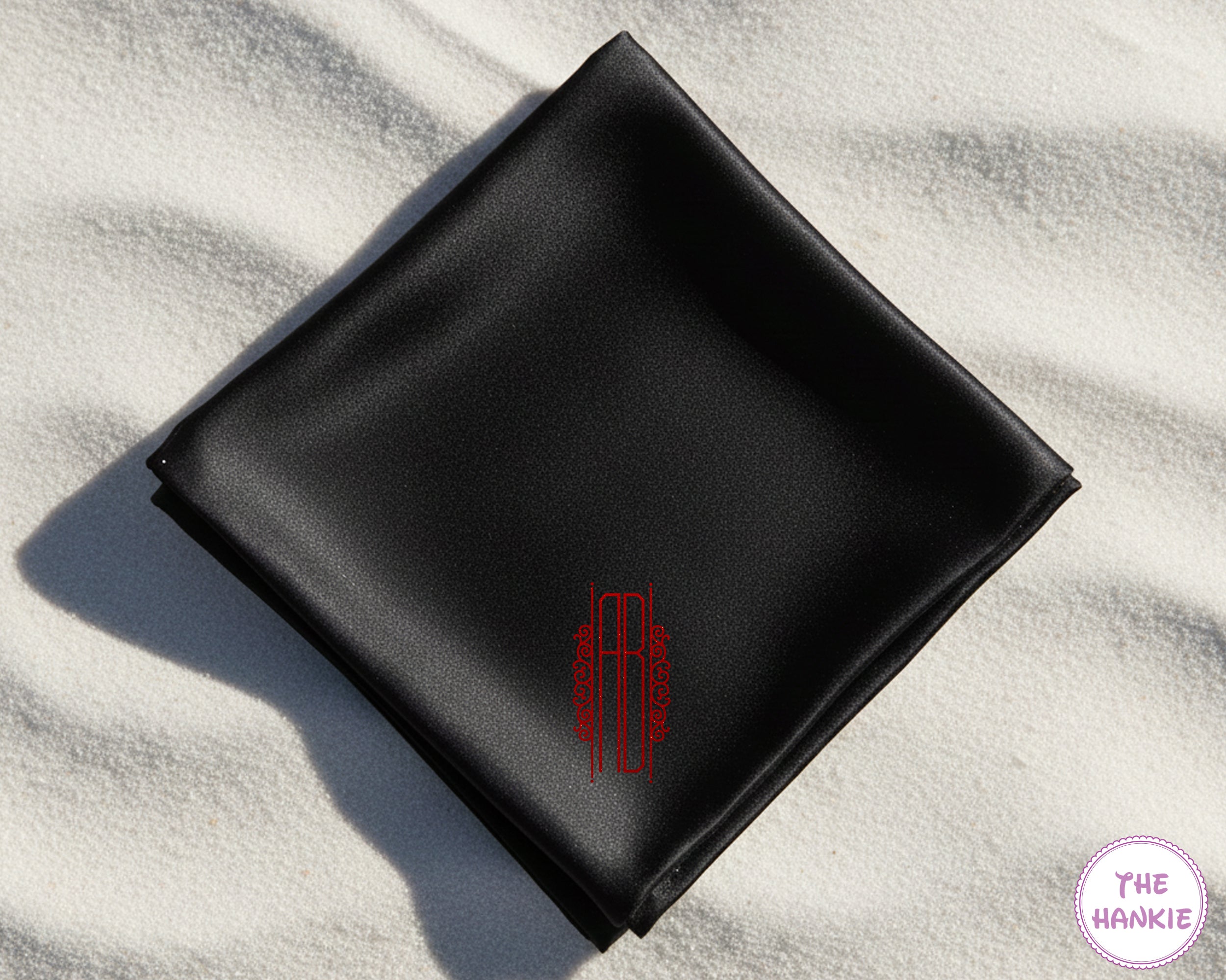 Black Men’s Satin Hanky – Custom Vinyl Monogram