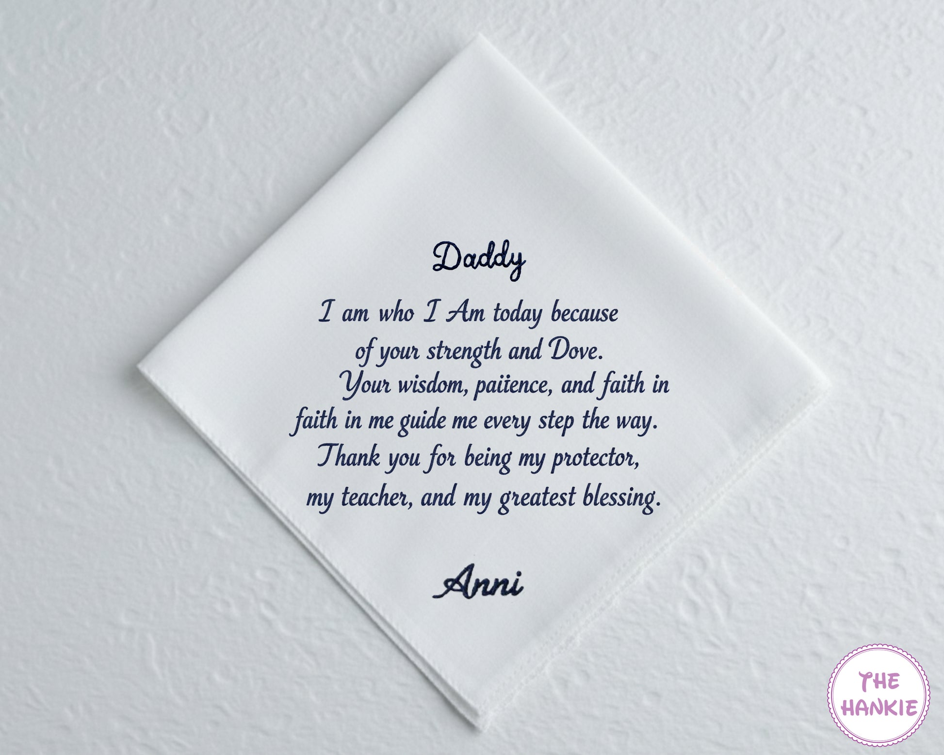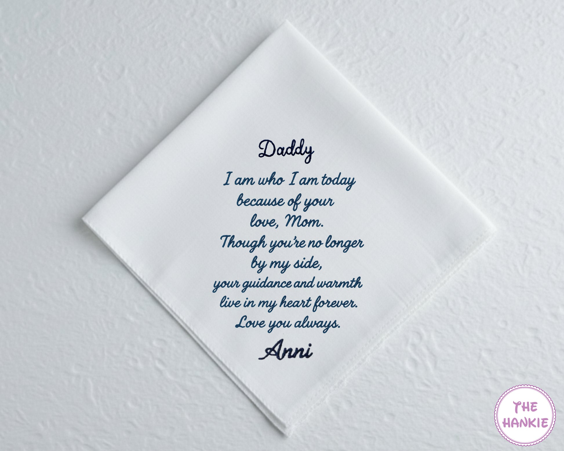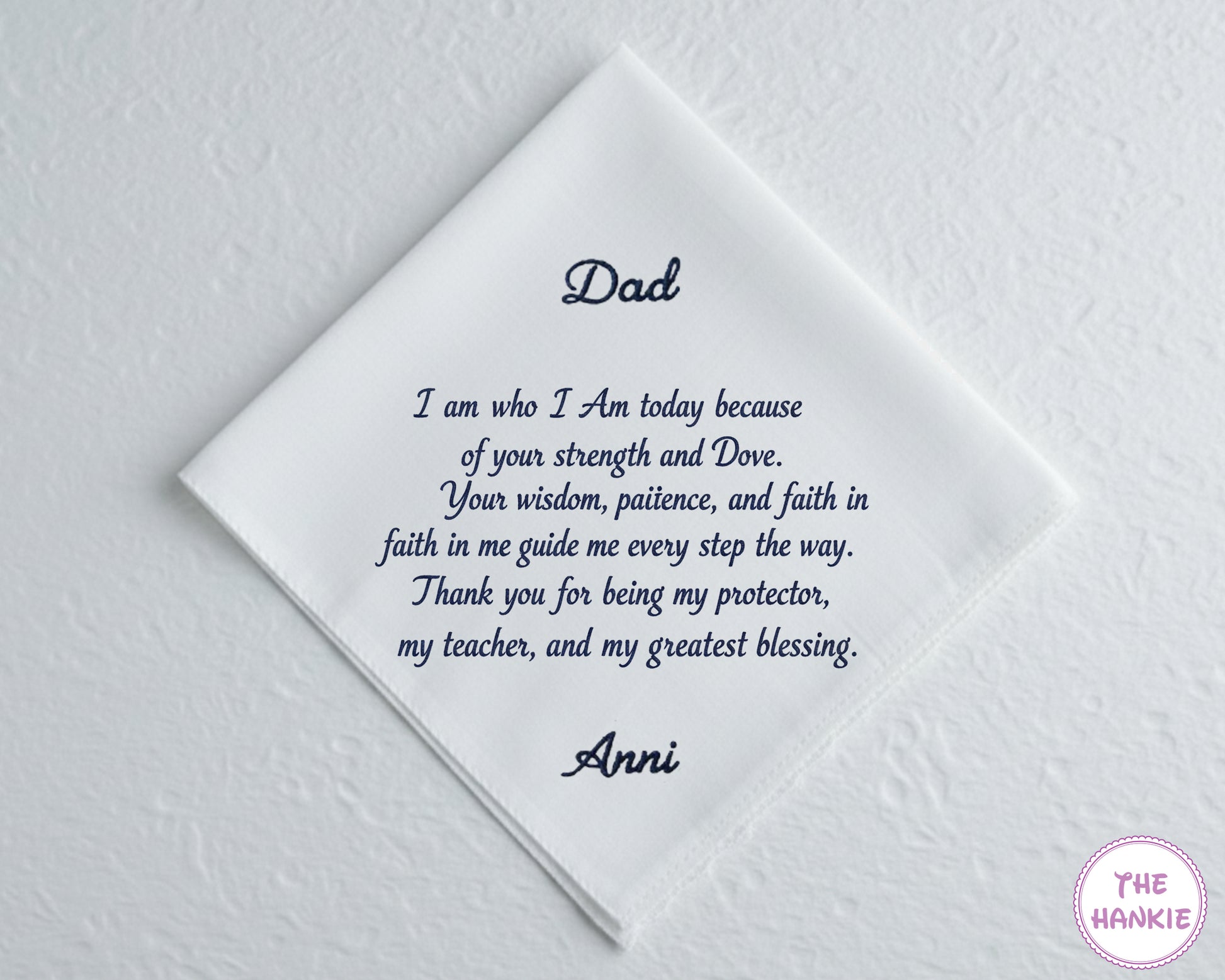 ➺ Honor the memory of your beloved dad with this Custom Cotton Embroidery Memorial Handkerchief, thoughtfully crafted to bring comfort, warmth, and remembrance to life’s most meaningful moments. Designed with care, it serves as a timeless tribute to the love and guidance he gave.