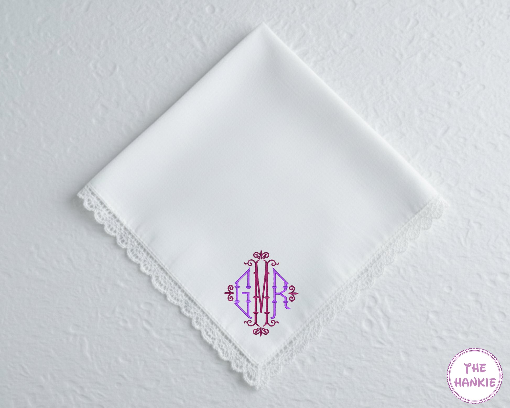 ➺ Made from soft, premium cotton, this handkerchief features a refined lace trim and a beautifully embroidered monogram—creating a graceful keepsake that feels both classic and uniquely yours.