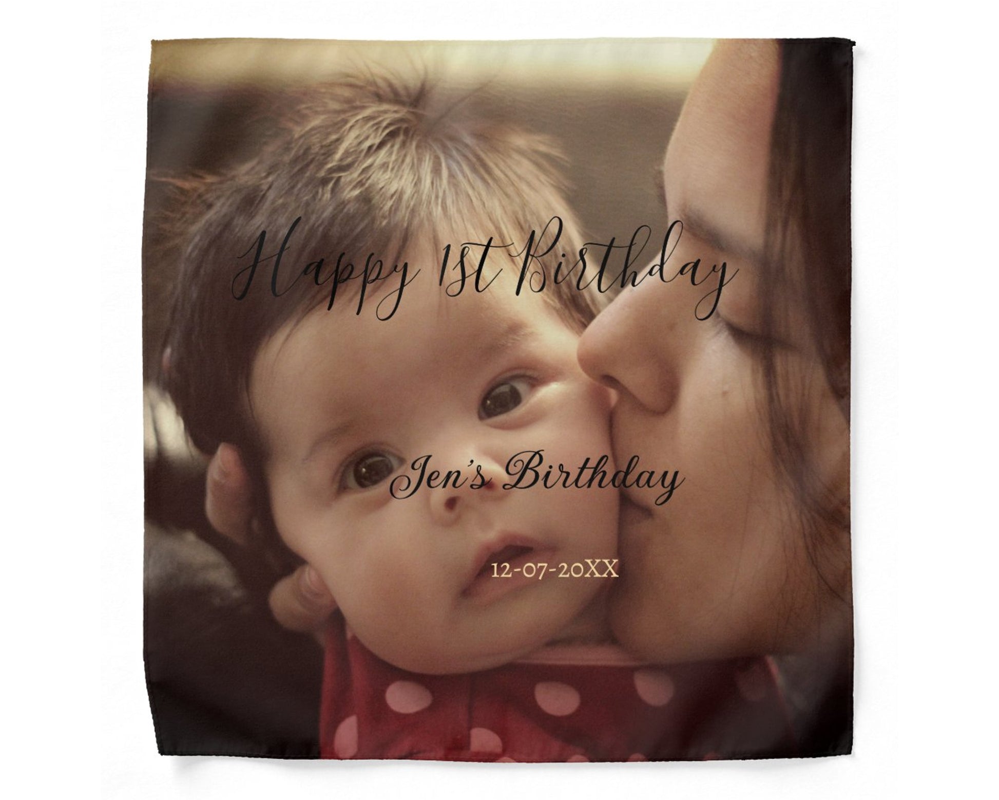 Custom Happy 1st Birthday Photo Keepsake Handkerchief