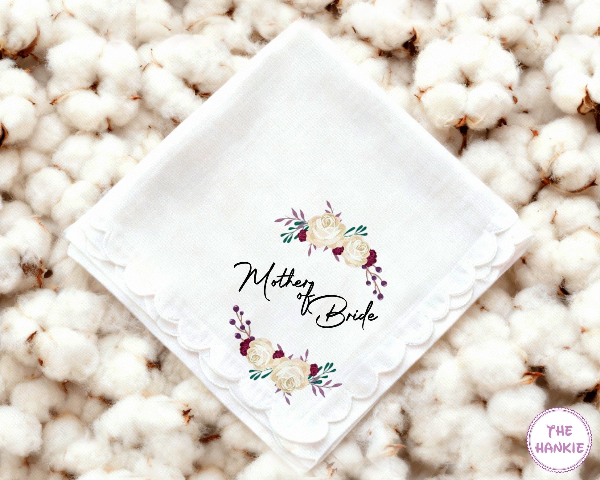 Floral Scalloped Keepsake Handkerchief for Mother of the Bride – Personalized Gift