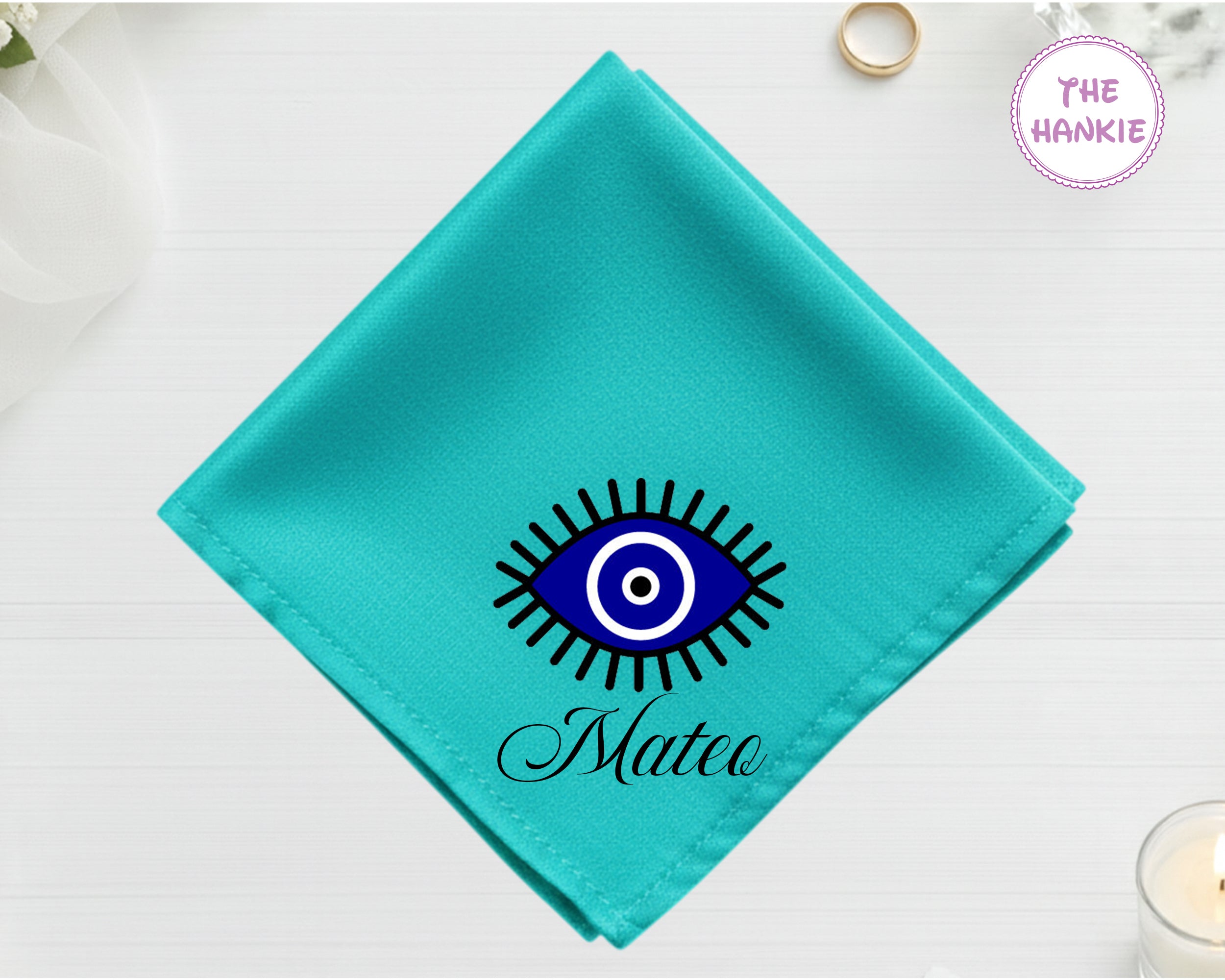 Protect in style with the Personalized Evil Eye Cotton Hanky with Name, a meaningful accessory that blends tradition with modern personalization. Crafted from premium quality cotton, this hanky is soft, breathable, and highly absorbent, making it perfect for everyday use. The striking evil eye design adds a symbolic touch believed to ward off negativity, while the custom name personalization makes each piece uniquely special. Thoughtfully designed by The Hankie, it reflects careful craftsmanship and distinctive style.